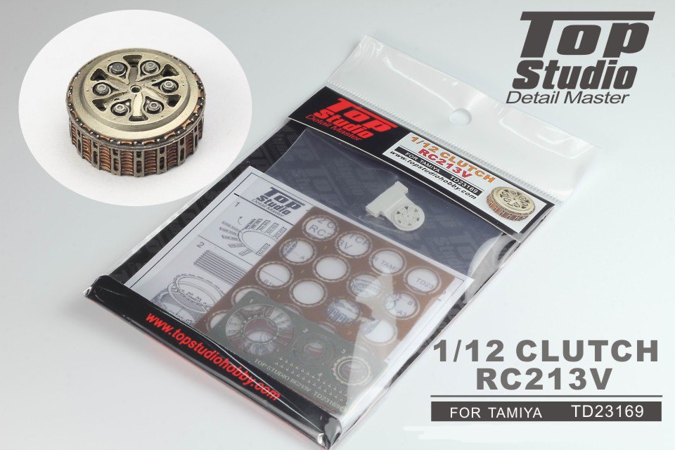Honda RC213 V Clutch 2014Made to fit Tamiya kitsThe design of these clutch detailing sets all follow a very similar pattern with a sequence of fine etched brass plates to be stacked into an etched stainless steel cage. That cage needs careful bending and slotting together and there is a resin centre cover. Each is a slightly different design to reflect the specific bike and all will add subtle detail to your model.