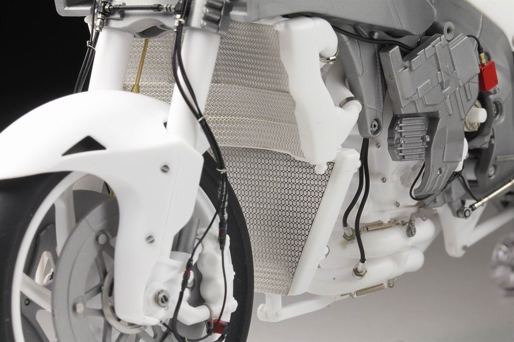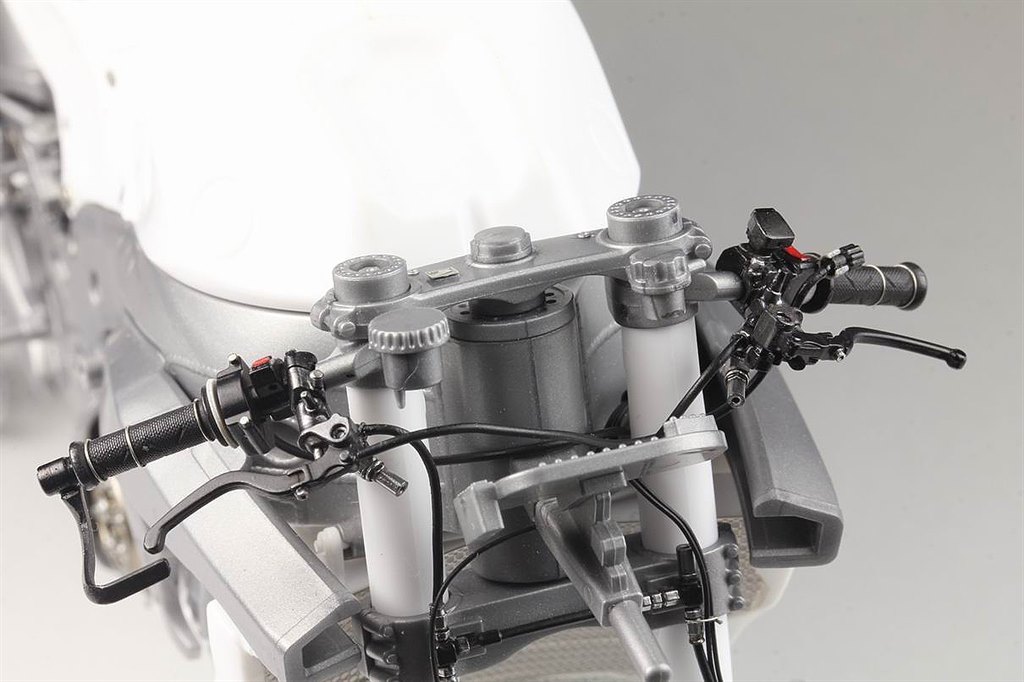 There is plenty in this set to add detail to your Tamiya bike kit, with many of the sets available separately too. We have new twist grips and levers, numerous sensors for the engine, wiring and connectors, a clutch kit, steering damper, swing arm fixings, a machined exhaust tail pipe and myriad other tiny etched components.