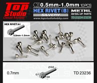 Description: Hex Rivets 0.7mm Diameter Silvery Type B (x10)