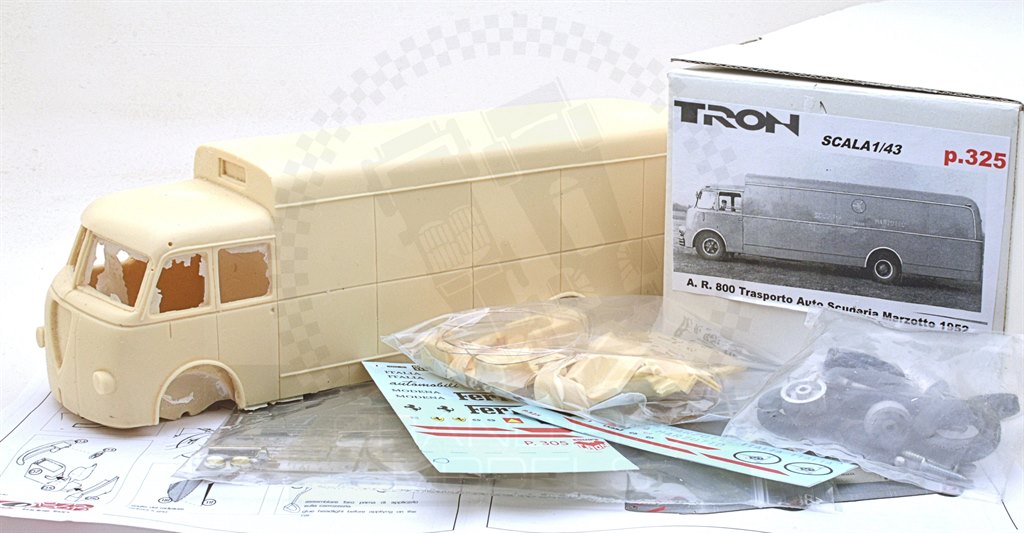 The parts in these two kits are identical apart from the instructions and decals and this is logical, as they depict the same truck at different times in its career! Initially used by the Ferrari race team, it then passed to the Marzotto brothers, who were friends and favoured clients of Enzo and enjoyed much competition success themselves. There are a few bubbles to deal with on the underside but the visible surfaces are very good and the panel engraving extremely crisp. This includes a deep belt line into which a chrome trim must be carefully fitted after painting and will also serve as a masking line if building the Ferrari version which needs a two-tone finish. A choice of rear doors is included, so that the track can be built open or closed, although if you take the open option you will need to get creative for ramps and interior detail. Photo-etch is included for the window frames and (pre-shaped) grille.