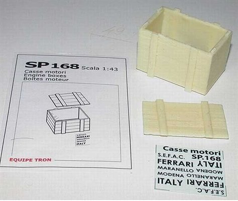This very simple resin accessory is a resin shipping crate with separate lid and decals for Ferrari labelling to go on the outside. The interior is hollow so you could fill it with one of Renaissance’s accessory motors (RENENG002/RENENG002B) or have the engine out in a workshop diorama with this in the corner.