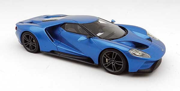 Ford’s all new GT was the star of the Detroit show and rather than being a homage to the original GT40 as its predecessor was, the new machine has state of the art supercar looks with just a few retro styling cues. Most dramatic is the deep aerodynamic channel passing from the doors, inside the rear wheels to the back of the car and this, like the rest of the body shape, is crisply sculpted and moulded on the model. The metallic blue paint has a fine grain and there are quite a few subtle detail highlights. Nicely done.