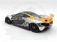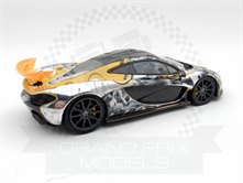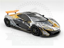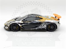 Custom paint used to be popular but these days vinyl wraps seem to be taking over, a huge range of finishes available and once you get bored, they’re relatively simple to have changed. In 2014, one Californian owner decided that his McLaren P1 was not rare and distinctive enough so had it delivered to Sticker City in Van Nuys. The result is this dramatic finish which sees most of the car covered in chrome, with satin silver graphics and more than a splash of orange. The carbon door and roof insert panels remain untouched adding more texture and contrast and the end result really is distinctive. On the model, the rear wing is painted and the orange used here is slightly darker than that on the decals beneath. The all over decal finish is excellent though, with no hints of bubbles or creasing.